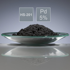 5% Pd/C (HS-201) is a Palladium catalyst on activated carbon powder. The catalyst is used in a variety of hydrogenation reactions. Areas of application are the reductions of nitro and nitroso groups into anilines as well as the full reduction of carbonyl groups and carbon-carbon multiple bonds. The palladium catalyst can be purchased in different Pd concentrations from 3-10%. After use, the spent catalyst can be returned to Heraeus for recycling of the valuable precious metals.